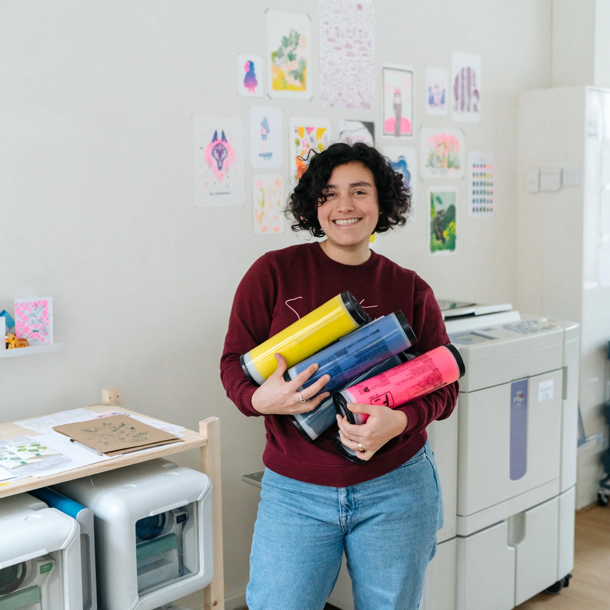 Riso Pop is meant to be a small and cozy space that welcomes anyone who would like to learn how to use the risograph, a printing technique often described as “digital screen printing”. In the studio I teach people through workshops and courses and like to do collaborations.